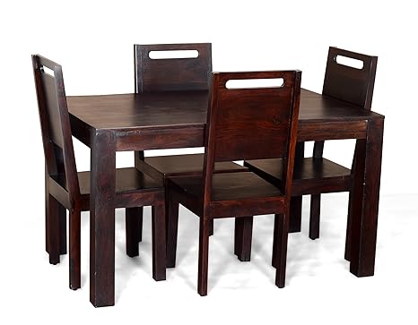 Madera Carol Four Seater Solid Wood Dining Table Set Mahogany Finish Brown
