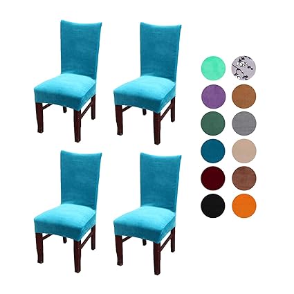 Velvet Spandex Stretch Dining Room Chair Cover Removable Chair Slipcovers Set Of 4pcs Peacock Blue