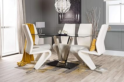 Sephora Stylish Modern Designer Glass And Steel Dining Room