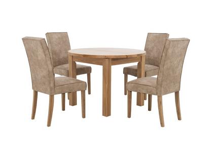 Bruges 6 Person Oak Unfinised Dining Table 4 Liege Suede Leather Look Dining Chairs Cognac