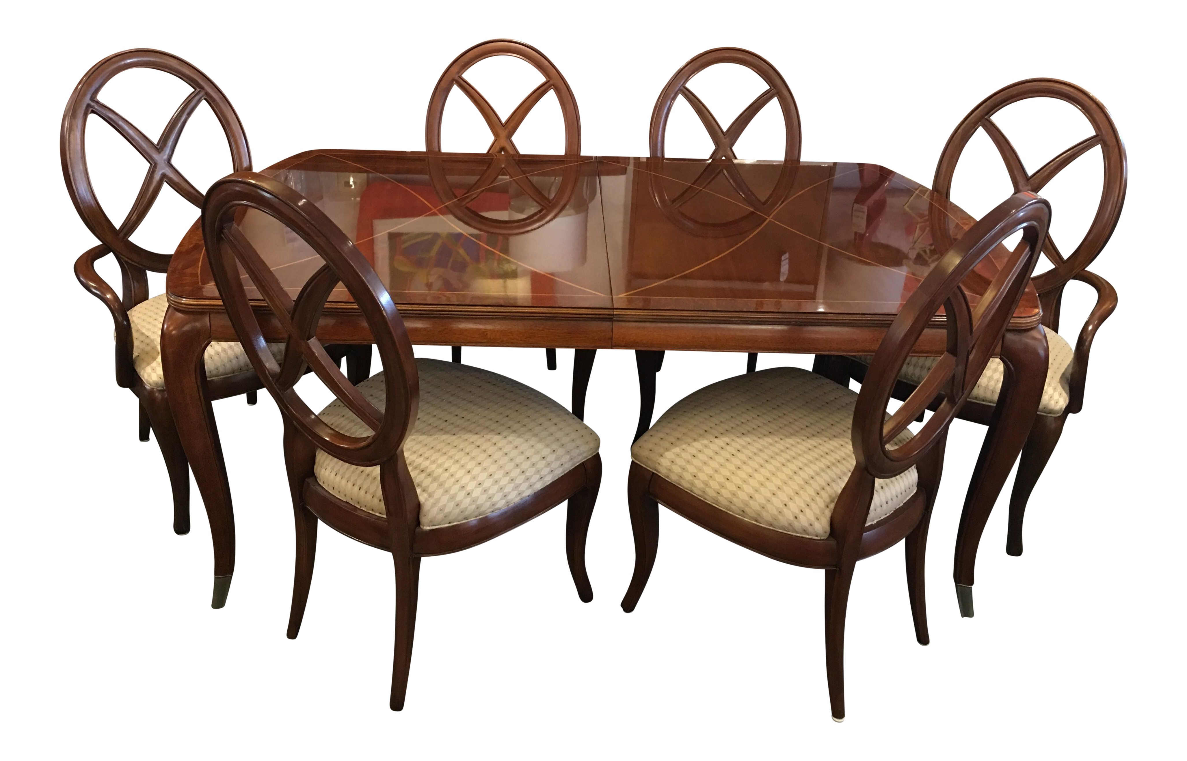 Thomasville Bogart Bel Air Mahogany Dinning Table 2 Leaves 6 Chairs
