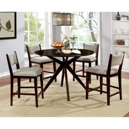 Furniture Of America Wallace 5 Piece Contemporary Round Counter Height Dining Table Set Brown Cherry